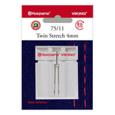 Viking Twin Stretch Needle, 130/705H - 75/11The HUSQVARNA® VIKING® Stretch Twin Needle is designed for perfectly parallel topstitching on stretch and knit fabrics. Featuring two 75/11 needles set 2.5mm or 4.0mm apart, this needle ensures flexible, durable stitching on stretchy materials such as jersey, spandex, and elastic fabrics. The medium...