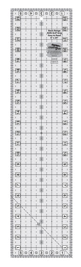 Creative Grids Quilt Ruler 8-1/2in x 24-1/2inThis 8-1/2 x 24-1/2 inch rectangle ruler features easy-to-read black and white markings printed in 1 inch grids marked in 1/8 and 1/4 inch increments. Use the easy-to-read, black numbers (printed on white dots) and the 1/4 inch grip sides to cut whole inches....