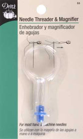 Dritz Needle Threader with Magnifiery and easily. Made of: Plastic Use: Needle Threader and Magnifier Included: One Needle Threader and Magnifier