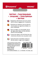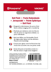 HUSQVARNA® VIKING® Ball Point Needles Size 70/10 5-PackPerfect for light weight knit and stretch fabrics, including microfiber, polyester and synthetic fabrics. With a rounded tip, this needle slides between the yarn in the fabric without snagging. For optimum performance, change your needle and/or type of fabric every 6 - 8 hours...