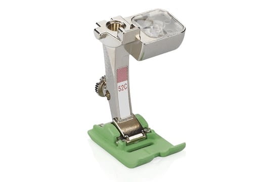 Straight Stitch Foot with Non-Stick Sole #53 makes it easier to sew “sticky” materials, ensuring an even, pucker-free straight-stitch.