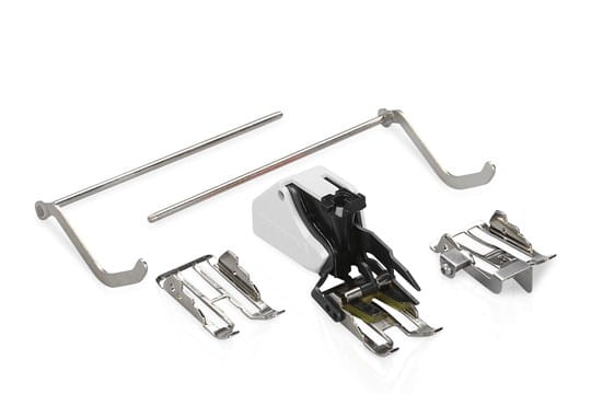 Three-Sole Walking Foot with Seam Guide #50 is an indispensable aid when sewing difficult fabrics.