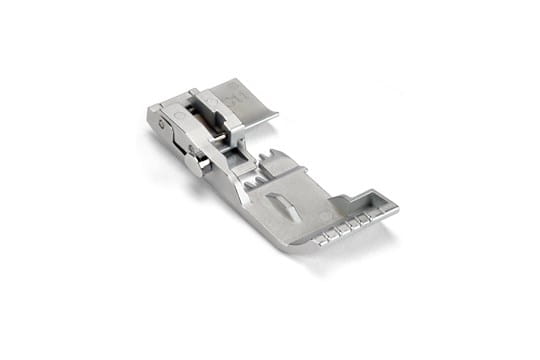 The Cover-/Chainstitch Foot facilitates fabric feed while chain stitching. Perfect for seams along even surfaces or sewing in flat fabric.