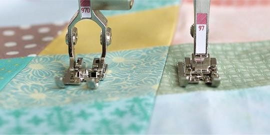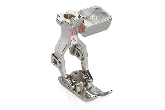 Patchwork Foot #37D features special markings and a straight stitch opening and is ideal for patchwork and precision sewing.