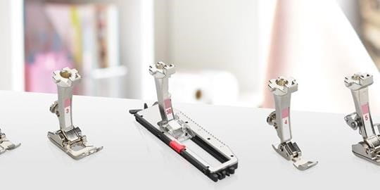 BERNINA presser feet stand for precision and stability. They are easy to change and BERNINA has a suitable presser foot for every application. The sewing feet are divided into two types with different shank openings..