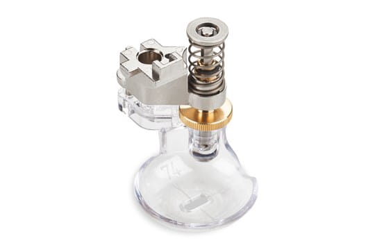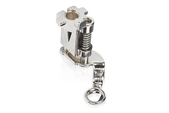 The Adjustable Gliding Cup Foot #74 is a cup-shaped foot that aids in quilting around dimensional elements on a quilt. Easily quilt around or over raised and uneven seams and embellishments.
