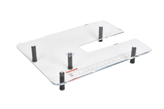 BERNINA slide-on tables expand the size of your workspace around the needle for more creativity and easier maneuvering of fabric.