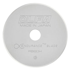 Olfa's 60mm Endurance Rotary Blade is a high-performance blade that lasts twice as long as a standard rotary blade. Effortlessly cut through multiple layers of fabric with precision. Olfa's 60mm Endurance Rotary Blade fits most Olfa brand rotary cutters that use a 60mm blade.