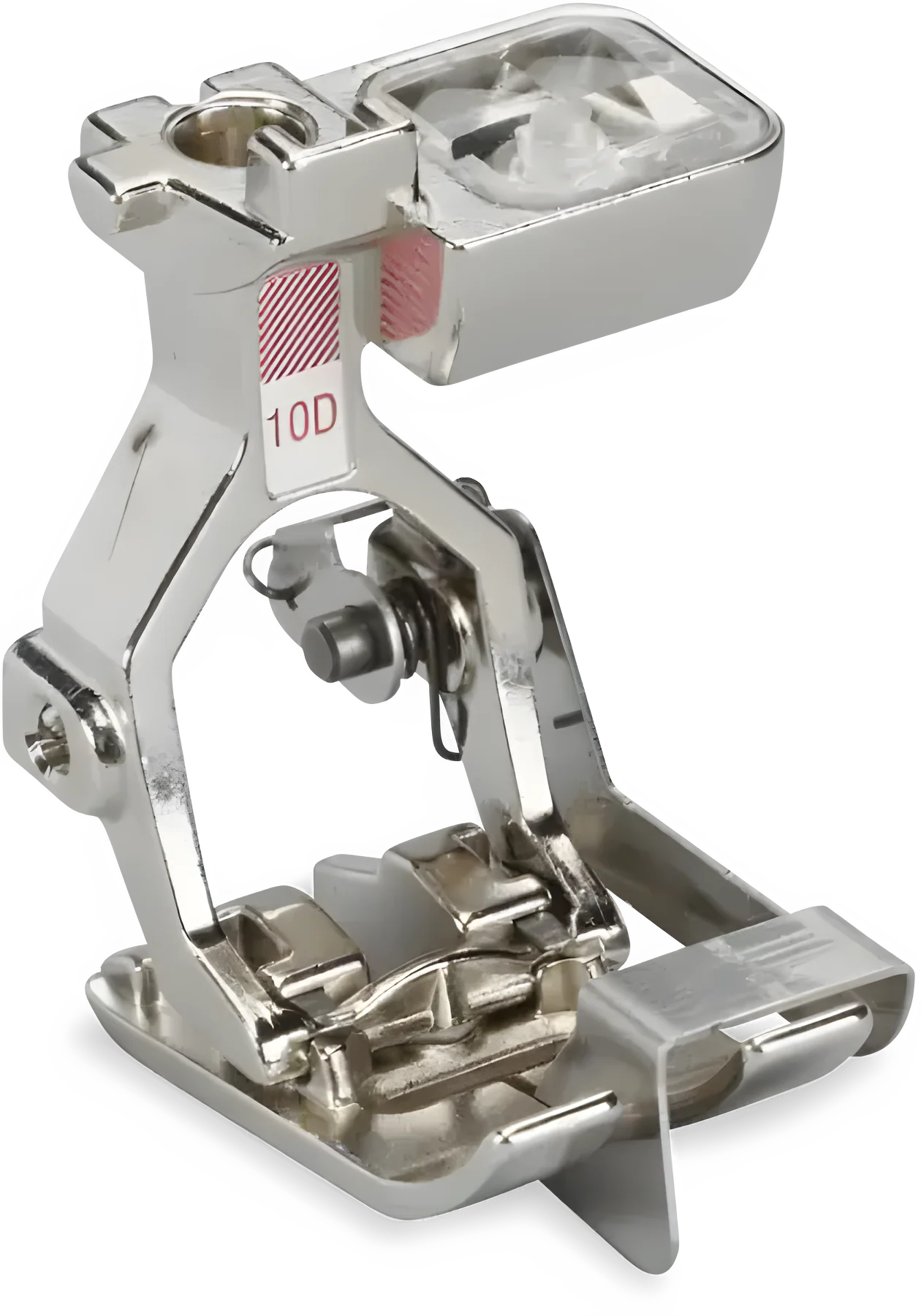 Edgestitch foot #10D is a practical help for sewing finished edges even and straight. Superbly suited to applying lace and trims, Edgestitch foot #10D is also ideal for topstitching edges, pleats and hems.