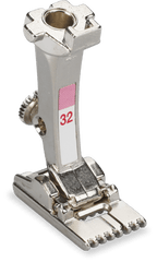 Pintuck foot with 3 grooves #30 is a versatile presser foot for sewing attractive pintucks in combination with a 4 mm double needle. It is also ideal for sewing mini-piping, as well as for elastic gathering and the couching of braids and trim.