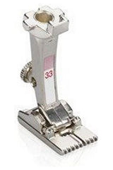 Pintuck Foot with 9 Grooves #33 is especially suitable for lightweight fabrics such as batiste. When sewing pintucks, it is used with a double needle.