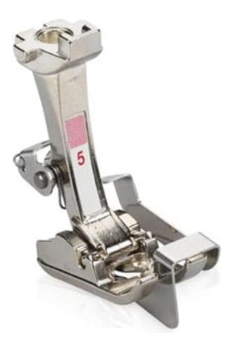 Blindstitch foot #5 is the invisible-hemming expert. When you sew a blind-hem with this foot, the stitching can scarcely be seen from the front. With Blindstitch foot #5 the stitch is formed over a special blade that acts as a guide, creating a slightly loose stitch so that the hem lies nice and flat.