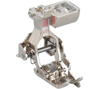 Patchwork Foot with Guide #57D differs from Patchwork Foot #37 only in that it has a built-in seam guide along the right edge of the foot. It is therefore particularly suitable for patchwork projects with 1/4” (6mm) or 1/8” (3mm) seam allowances.