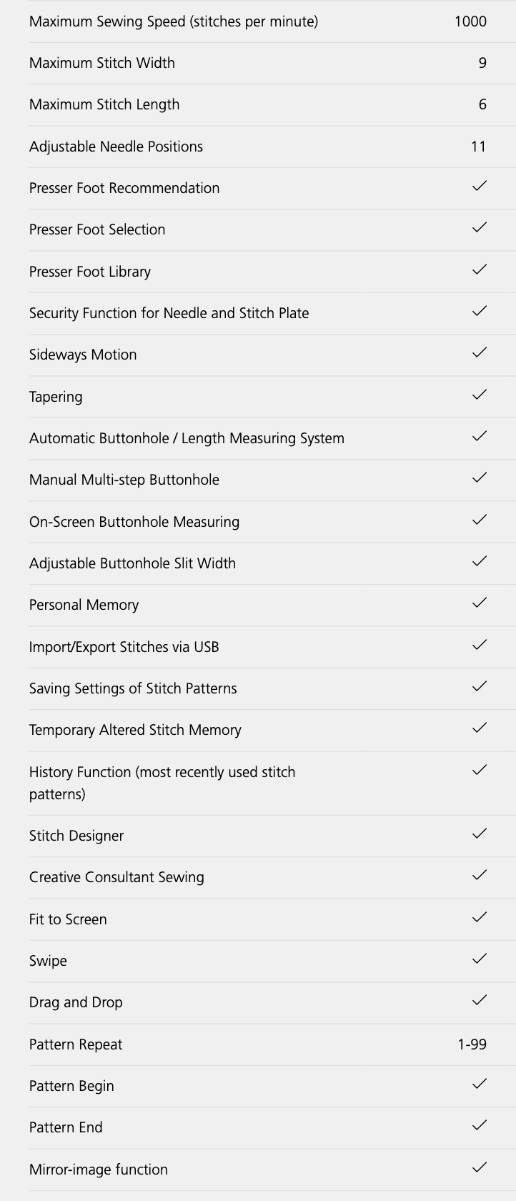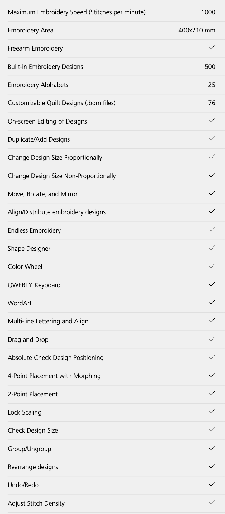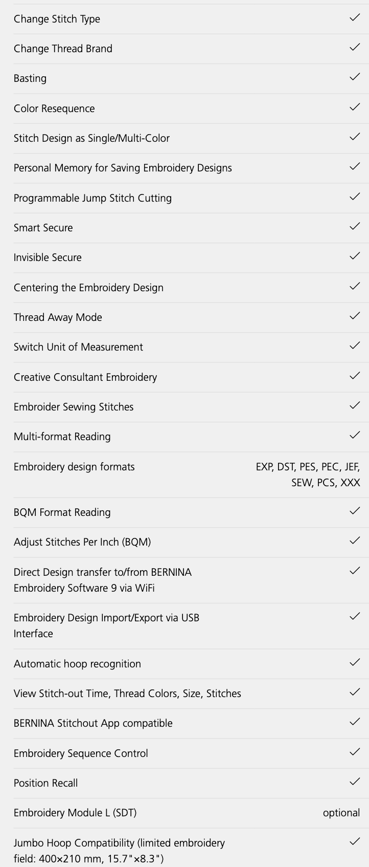 - Embroidery module optional