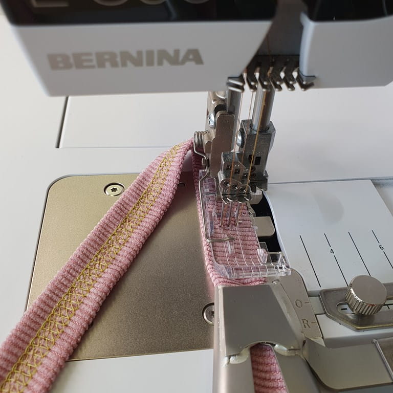 With the Belt Loop Folder #C30-20/40 mm, you can easily create 20 mm wide belt loops, ribbons or straps from straight-cut tapes without ironing or pinning. In addition to being used as belt loops, the ribbons can also be sewn on decoratively or made into straps; there are no limits to your imagination. The wide 3-thread or 4-thread coverstitch is ideal for sewing belt loops.