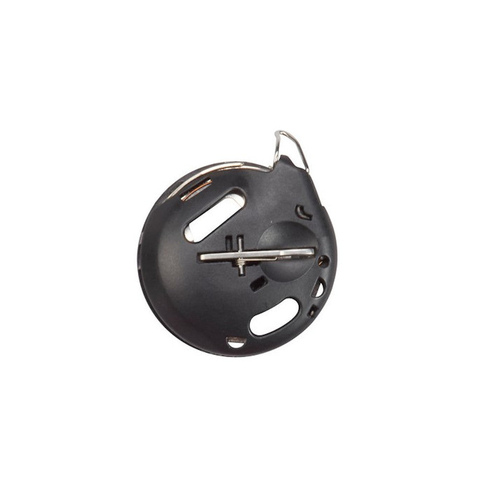 This is an ideal bobbin case for sewing and embroidery. It is black and marked by a small triangle in the accessories catalog.