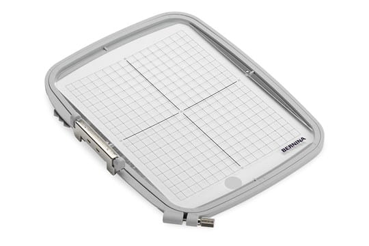The Large Embroidery Hoop (max. embroidery area 155 x 200 mm) is an indispensable help for creating extensive and particularly large embroidery designs. The template that is included enables exact placement of the fabric on the hoop.
