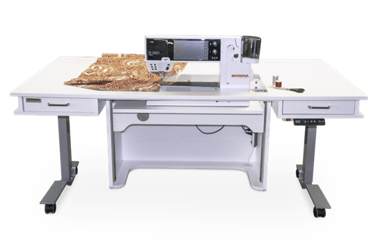 Need to cut large pieces of fabric? Just lower your machine to the storage position, replace the filler panel and you have a large 67” x 36” work surface.