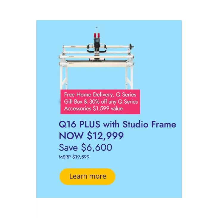 Choose between 16 Inch (Q 16 PLUS), 20 Inch (Q 20) or 24 Inch (Q 24) throat space. Our Quilt Frames are available in different sizes.