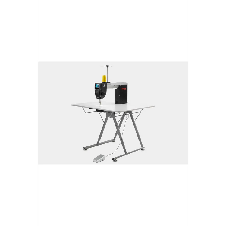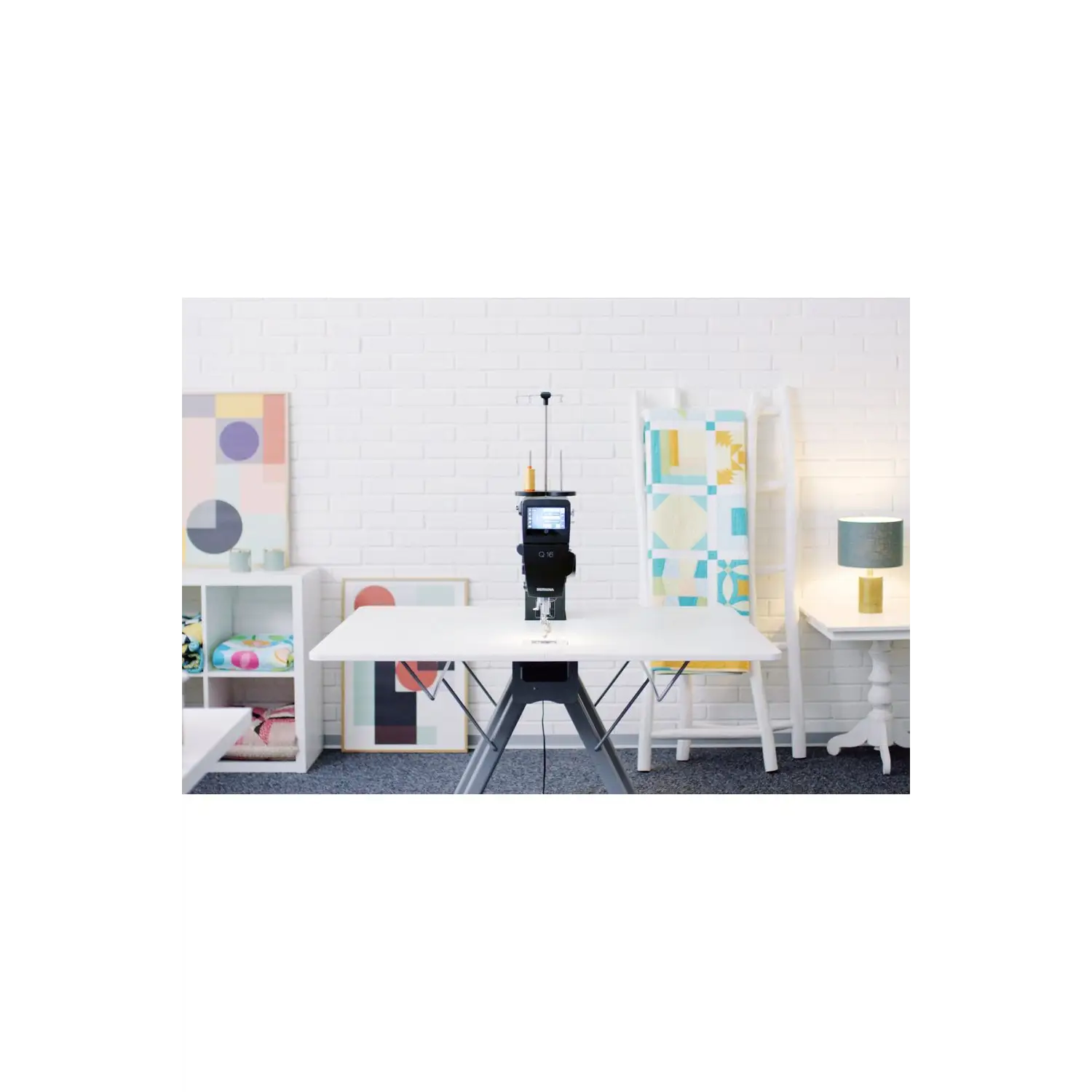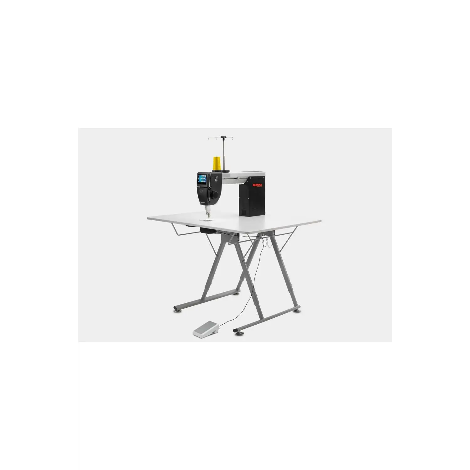 The machines can be paired with a standard or height-adjustable cabinet or with a foldable, height-adjustable table. The BERNINA Q 16 PLUS and Q 20 are compatible with the BERNINA Studio Frame if an upgrade to a Quilt Frame is desired.