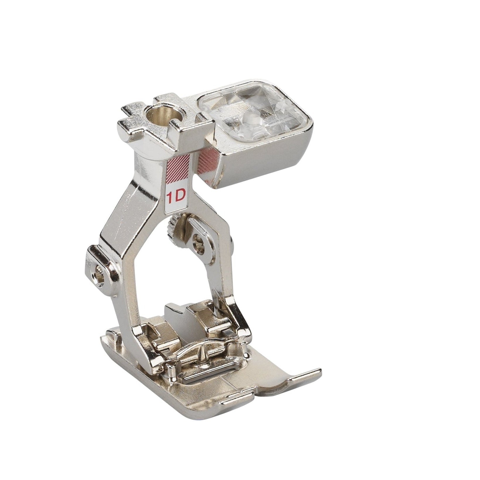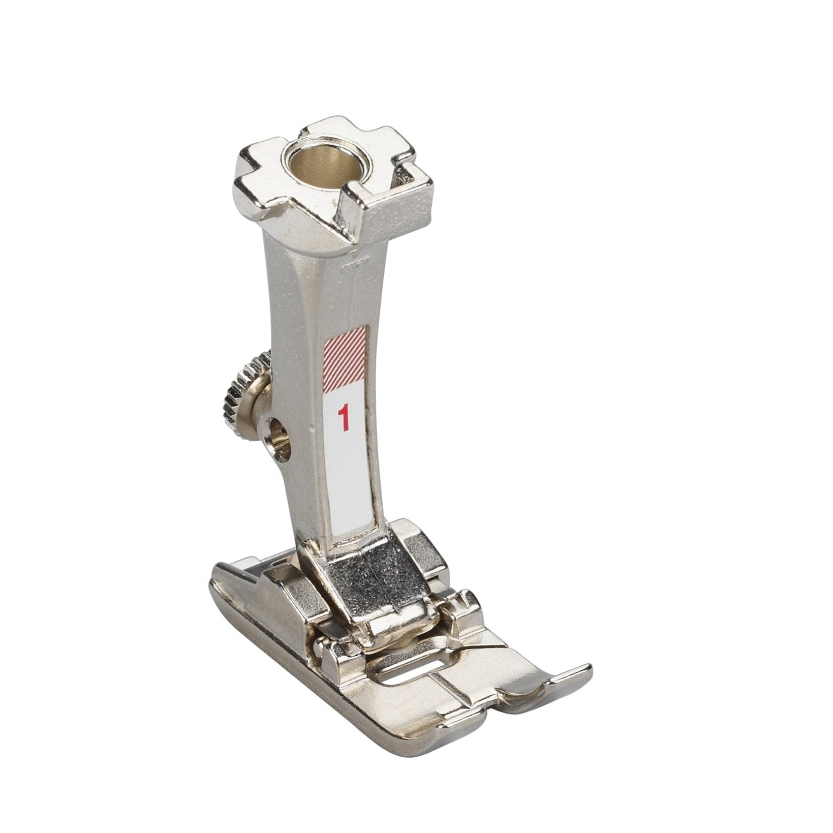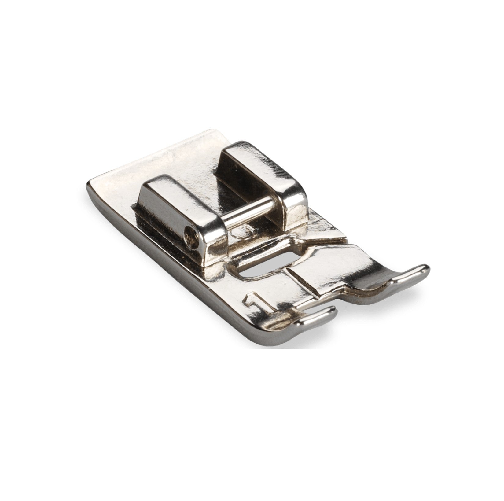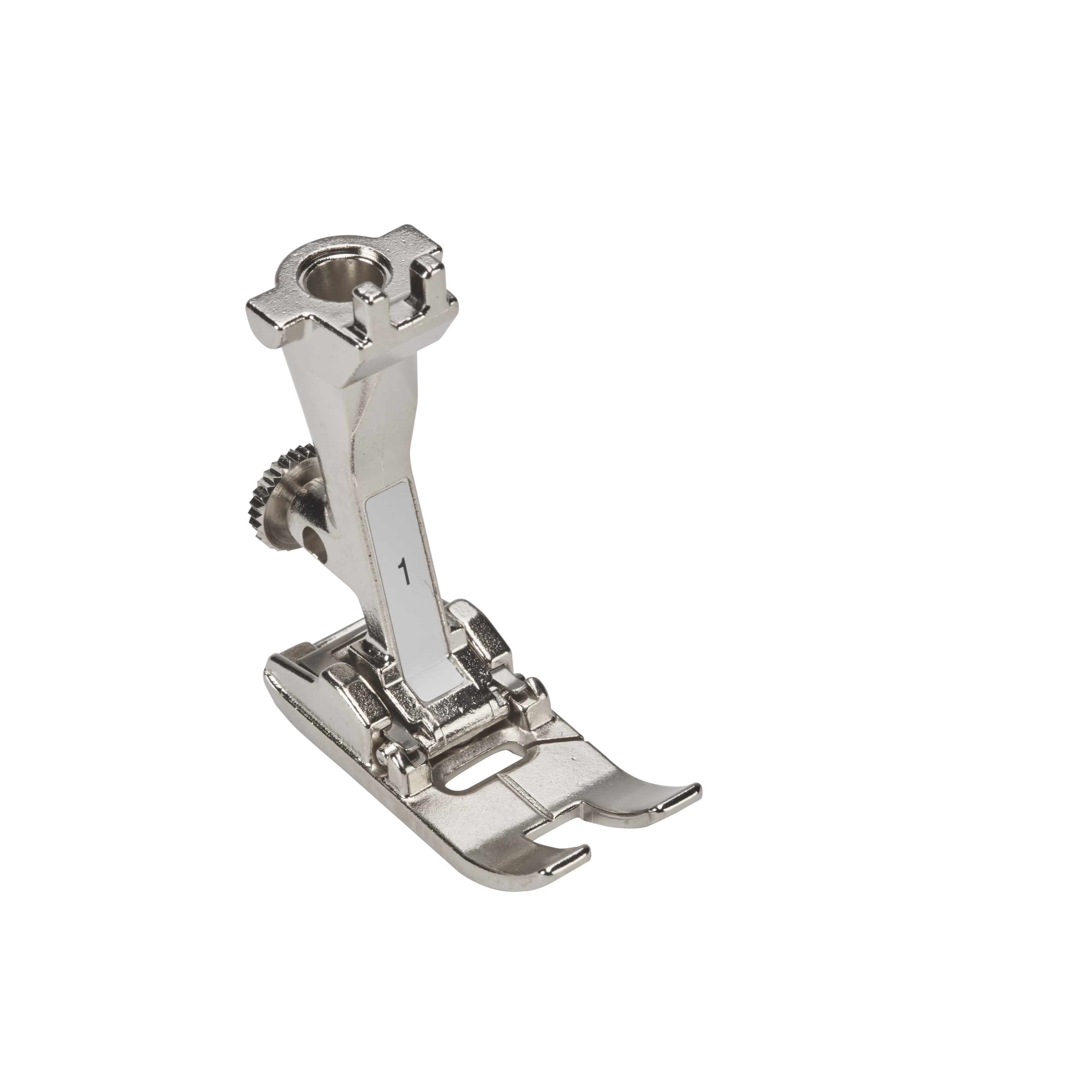 This presser foot makes quick work of assorted utility and decorative stitches, as well as the sewing of waistbands and hems on heavy fabrics such as corduroy, denim or wool. Reverse Pattern Foot #1 features a side slot through which the upper thread can be conveniently pulled under the foot and to the back.