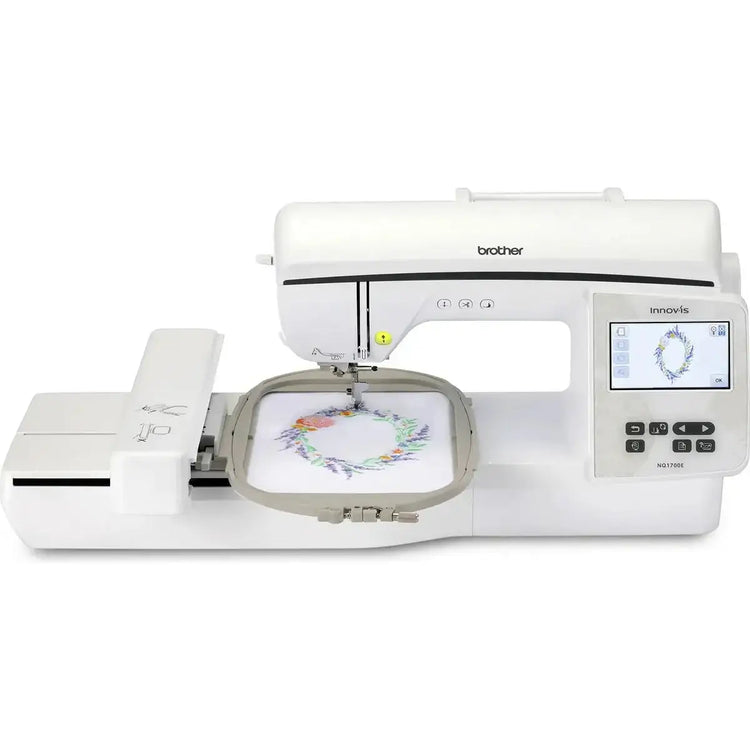 The Brother Innov-ìs NQ1700E advanced embroidery machine is perfect for starting your embroidery journey. Enjoy working on a generous 6" x 10" embroidery area with a sizeable 8.3" from needle to arm that helps you tackle big projects. A compact faceplate provides better visibility for changing needles while LED lighting keep the work area brightly illuminated. An intuitive 4.85" colour LCD touchscreen display offers on-screen editing, enhanced zoom, resizing, rotating, repositioning, drag and drop, and design combining, all right at your fingertips. Expand your creativity with over 250 built-in embroidery designs, 140 frame pattern combinations, and 13 embroidery lettering fonts that let you personalize and customize all sorts of things like home decor, clothing and even gift-giving projects.