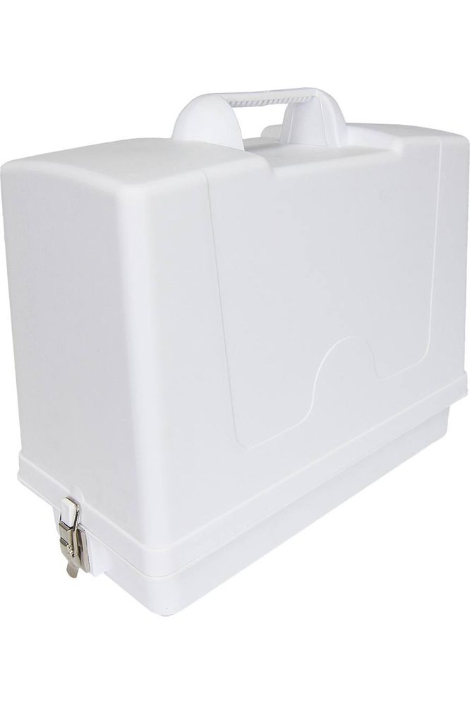 The Alphasew Flat Bed Carrying Case is made of hard plastic with rounded corners that help protect your machine. This portable sewing machine carrying case measures 17-3/8" L by 7-1/8" W.