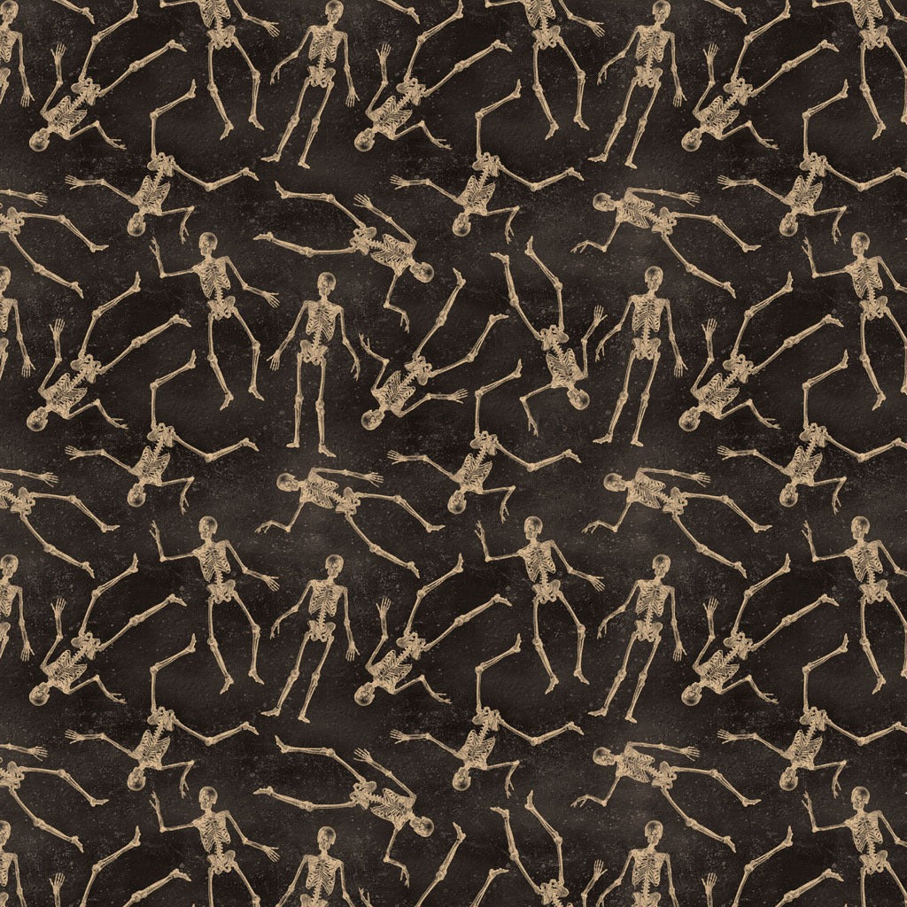 Clothworks Gothic Halloween-Skeletons Black (Sold By 1/2 Meter)