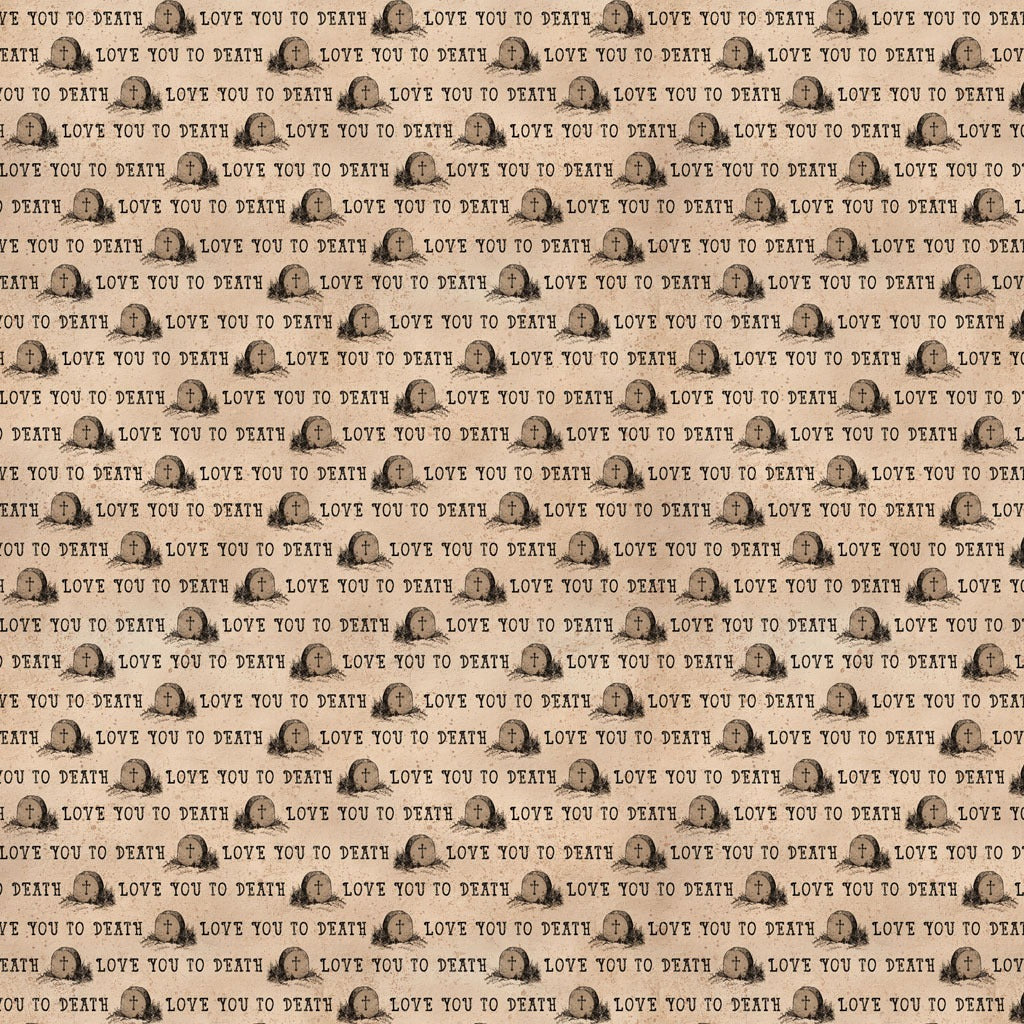 Clothworks Gothic Halloween-Love You Khaki (Sold By 1/2 Meter)