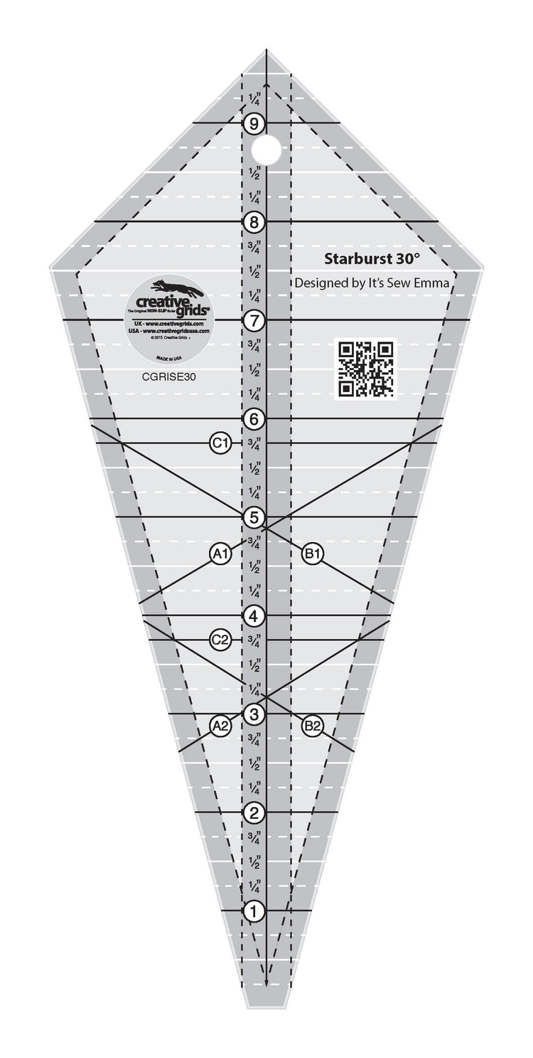 Creative Grids Starburst 30 Degree Triangle Quilt 9-1/2in Ruler