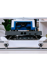 One of the biggest critiques left by quilters was the handle position, so Grace has wholly redesigned the carriage and handles to make your hand placement more comfortable. When you first start your quilt, your fabric may hang over the handles or bunch up around them if you have a large project, and that might impede your quilting. Another complaint was for taller people wanting to do stand-up quilting, the handles needed to be higher. With the handles now going over the top of the machine, Grace has fixed those problems for a more relaxing experience. As an added bonus, the handles also have a storage compartment that can hold scissors, pins, and bobbins.