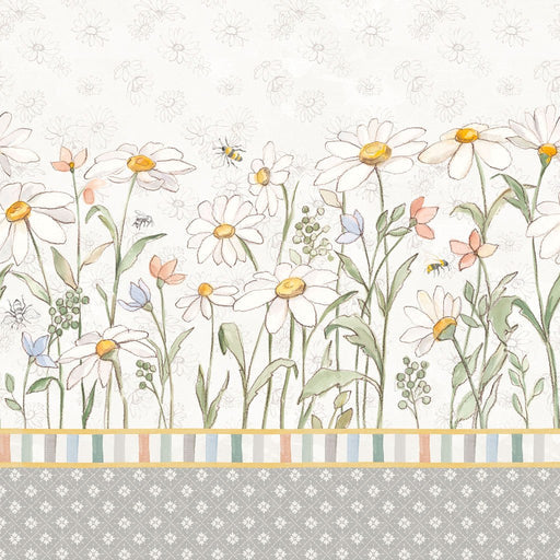 Clothworks Daisy Field - Double Border White (Sold By 1/2 Meter)