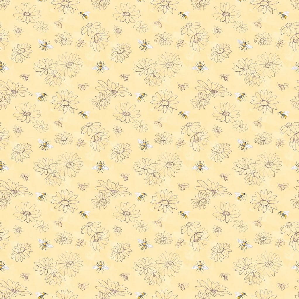 Clothworks Daisy Field - Floral Sketch Light Gold (Sold By 1/2 Meter)