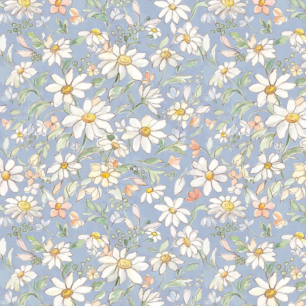 Clothworks Daisy Field - Packed Floral Light Denim (Sold By 1/2 Meter)