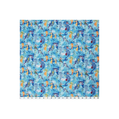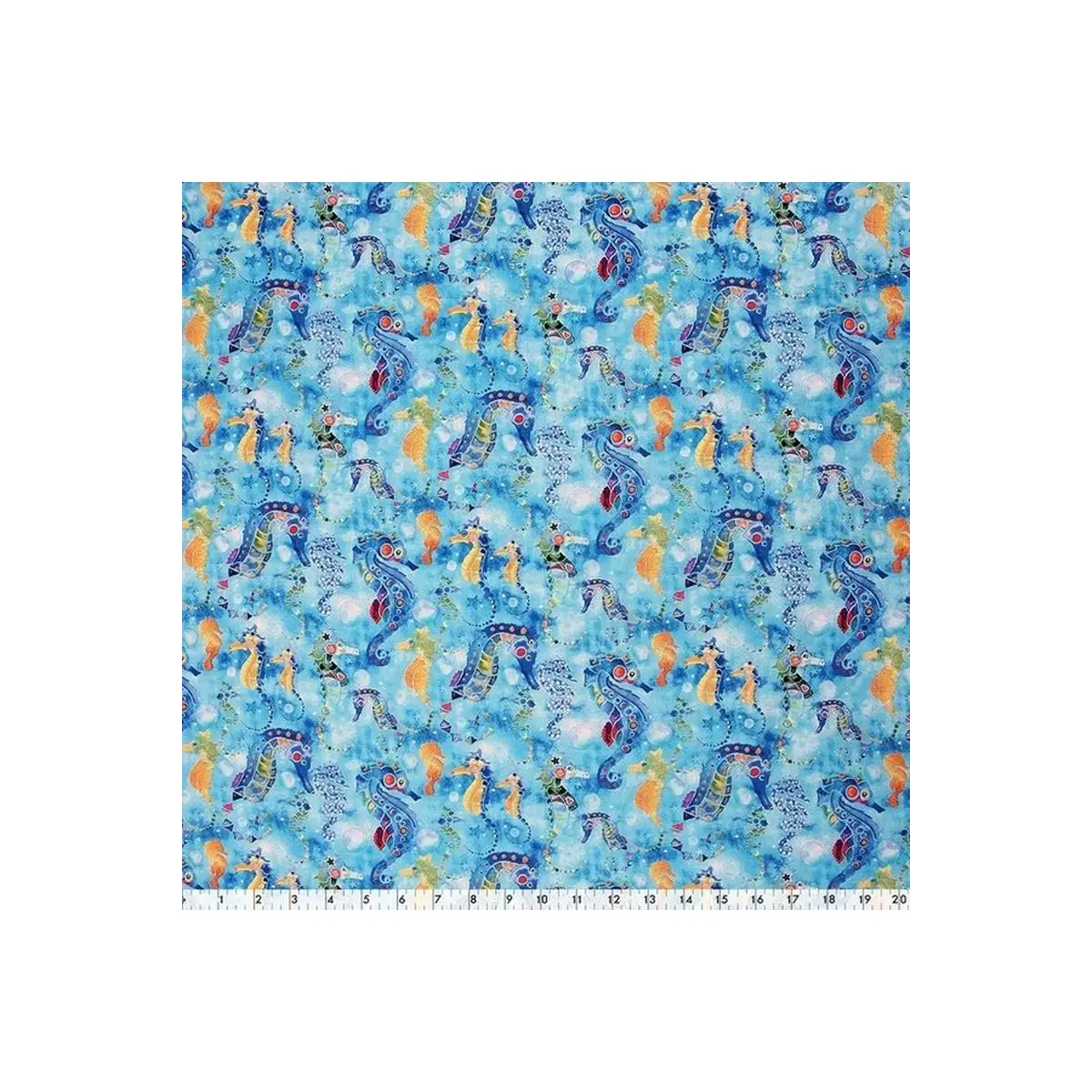 Fabric Creations, Blue with Colourful Watercolour Sea Horses