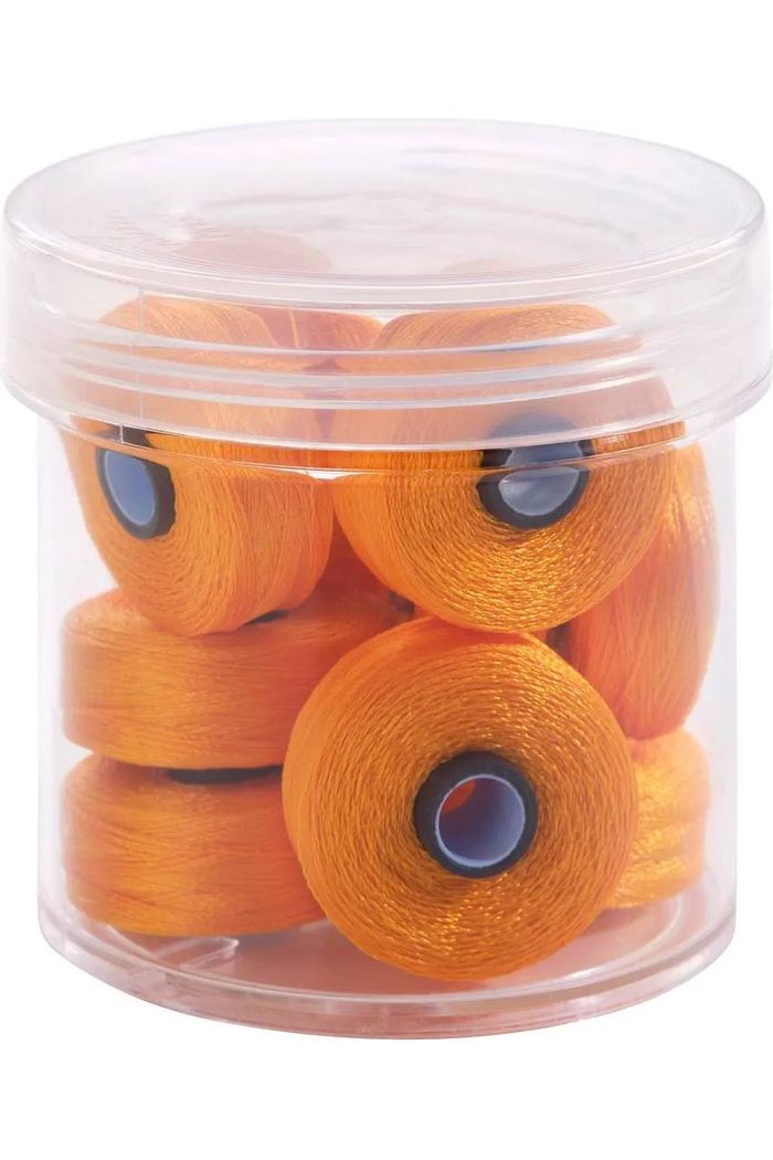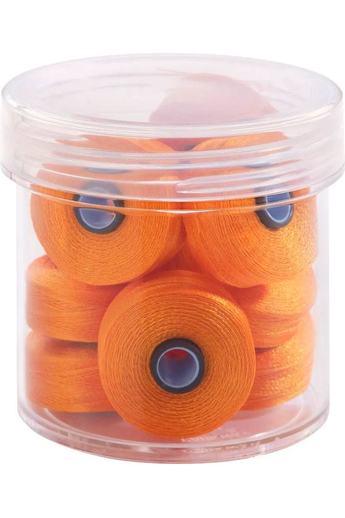 Fil-Tec's Magna-Glide, prewound bobbins make bobbin changes a breeze. Since they have consistent tension throughout, you will achieve nicer stitches. The patented magnetic-core prevents backlash creating consistent stitches and eliminating the need for a backlash spring (if your bobbin case has a backlash spring, remove the spring before inserting this bobbin). This trouble-free bobbin reduces lint and residual build-up in the bobbin case. Each bobbin holds 132-yards of 40-weight trilobal polyester thread, and each container holds ten bobbins. You can use the Magna-Glide Delight Bobbins to sew, quilt, or craft. For best results, it's recommended that you use these bobbins in tandem with Glide thread on the spool. Always insert the bobbin magnet side down into the metal case.