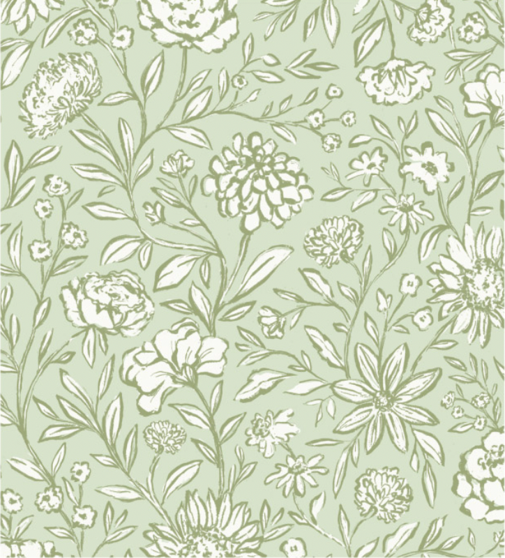 Flower House-Flower Mill- Light Sage (Sold By 1/2 Meter)