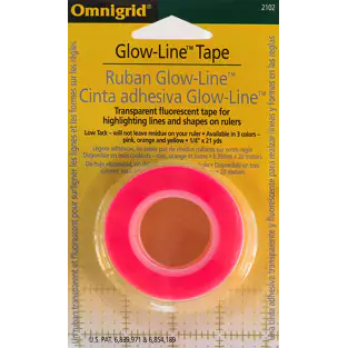 Omnigrid® Glow-Line Tape is a transparent fluorescent tape that highlights lines and shapes on rulers. It's perfect for beginners, aiding in locating measurements and saving time on specialty cutting. With its low tack and residue-free application, it's a must-have for precise and effortless crafting.