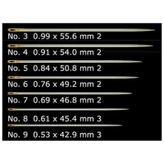 Long needles with round eyes used for: bonnet and hat making, pleating, ribbon, embroidery, and embellishing decorations.