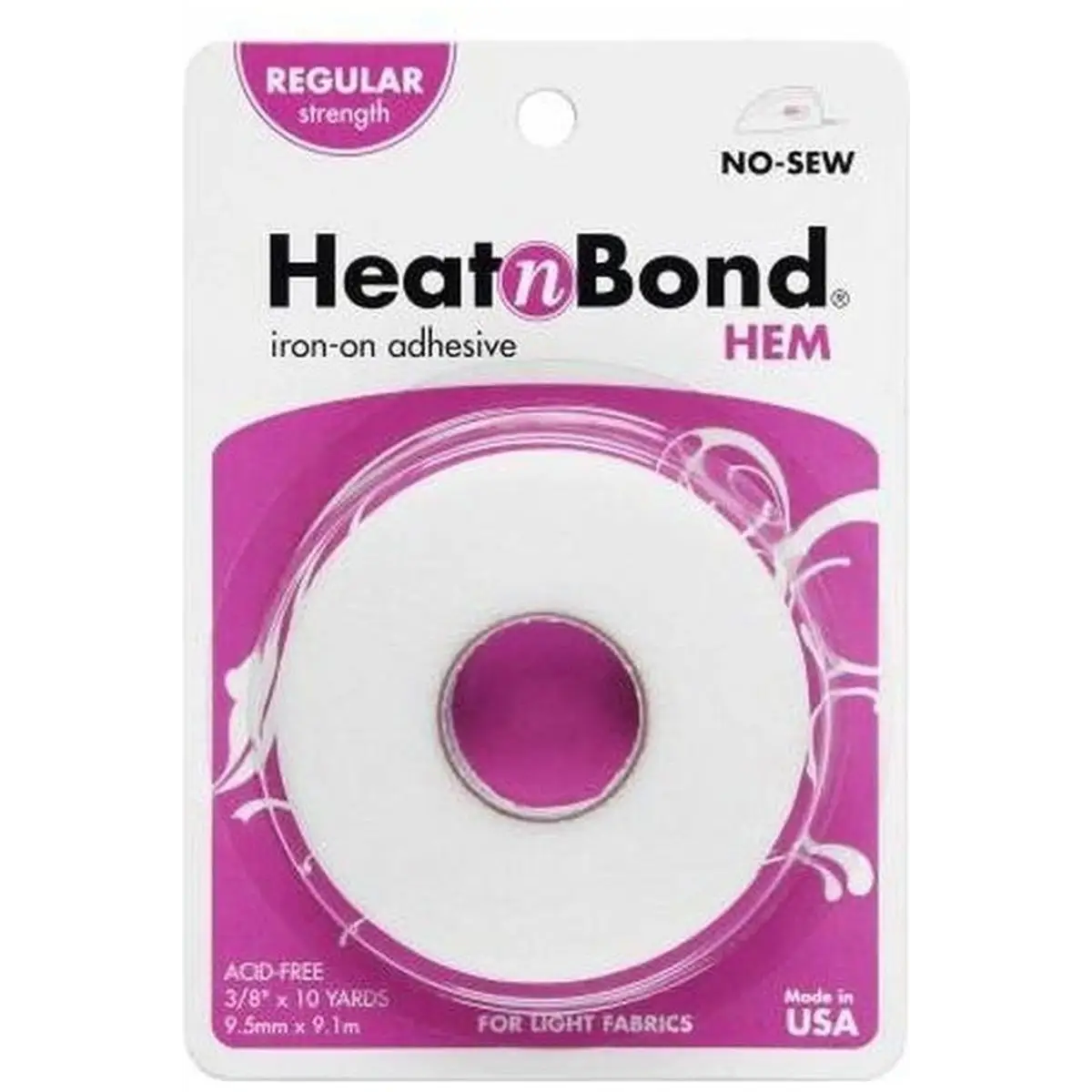Ruban d'ourlet Heat N Bond poids régulier 3/8 po x 10 mètres. Un rouleau d'adhésif thermocollant sans support papier conçu pour les projets nécessitant un ourlet fini. Cet excellent adhésif thermocollant sans couture facilite l'ourlet sans aiguille ni fil. Il crée des ourlets propres et sécurisés en quelques secondes