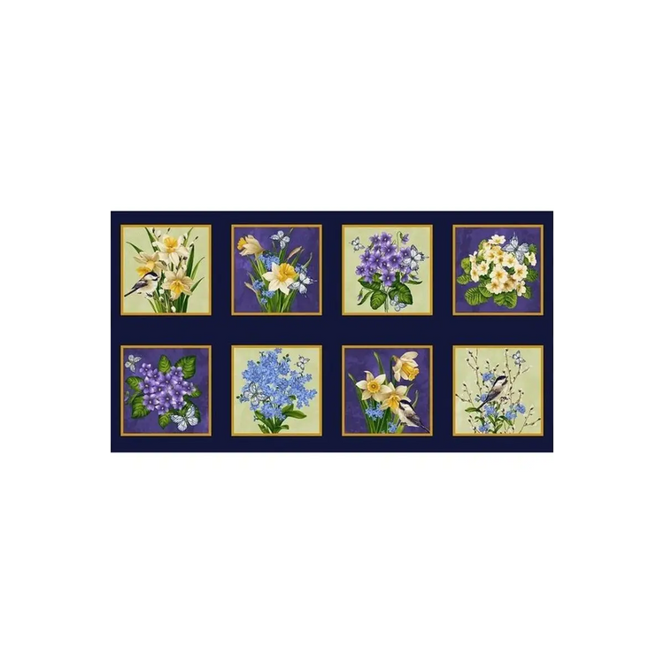 Henry Glass & Co. Fabrics, Nature's Affair Collection - Floral Blocks (Sold By 1/2 Meter)