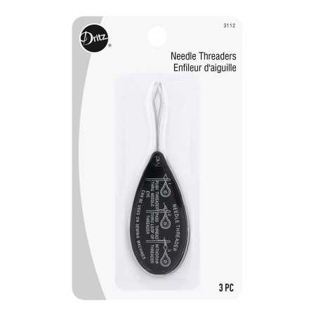 age teardrop handle, this threader makes it easier to hold and maneuver while you thread your needle, making the task a breeze. Whether you're using hand or machine needles, this threader is the perfect solution. Plus, the line art instructions printed directly on the handle make it easy to reference, ensuring you never lose your place.Made with a combination of plastic and metal, this threader is durable and long-lasting, and comes with three (3) needle threaders per card, so you'll always have a spare on hand. Don't let threading needles slow you down, upgrade your sewing game with the Dritz Threader and enjoy the following benefits: Made of: Plastic / Metal Includes: 3 Needle Threaders Use: Threading Needles