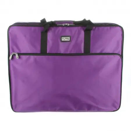 Holds embroidery unit, hoops, fabric, computer supplies, and fills pockets with sewing notions to your heart content. The black top board can double use as a design wall, great for blocks.Interior: 27in (L) x 21in (H) x 5.5in (D)Exterior: 28in (L) x 22in (H) x 6in (D)Features:- Ultimate Protection: The walls are lined with durable honeycomb board & padded with high density cell foams. Two inside straps to secure your embroidery unit.- Great companion bag: Carry individually with handle or shoulder strap. Also can stack on top of Tutto Machine On Wheels or Tutto Serger On Wheels.WARNING: Cancer and Reproductive Harm – www.P65Warnings.ca.gov Color: Purple Made of: Plastic, Metal and Nylon Use: Bag Size: 28in (L) x 22in (H) x 6in (D) Included: 1 Bag