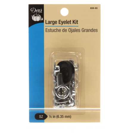 of sewing or art and craft projects. Use them on belts, vests and jackets, or to create laced effects on your garments. You can even apply them to heavy paper as embellishments for your scrapbooks or handmade greeting cards. Dritz size 1/4in eyelets are easy to apply with included hand tools Made of: Metal Use: Eyelets and Tool Size: 1/4in Included: 12 Eyelets and 1 Tool