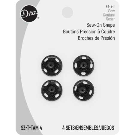 Crafted for durability and toughness, these sew-on snaps are easy to use and a valuable addition to your sewing kit. Color: Black Made of: Metal Use: Sew On Snaps Included: 4 Snaps