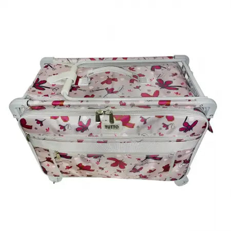 Tutto 1XL Sewing Machine Trolley Rose Gray with Pink Daisies Gray Frame