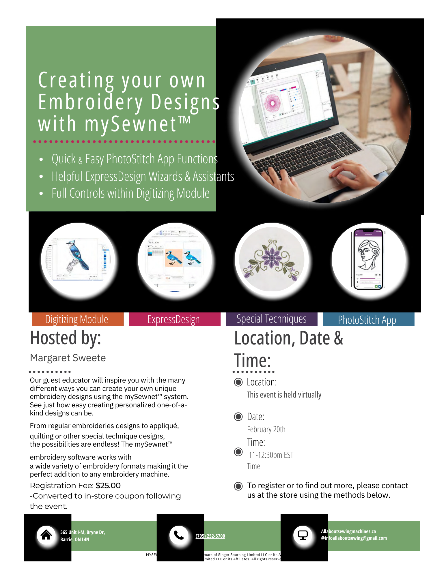 x**This is an event ticket to register for the MySewnet Embroidery Software & Ecosystem Event with Margaret Sweete, not a physical product**