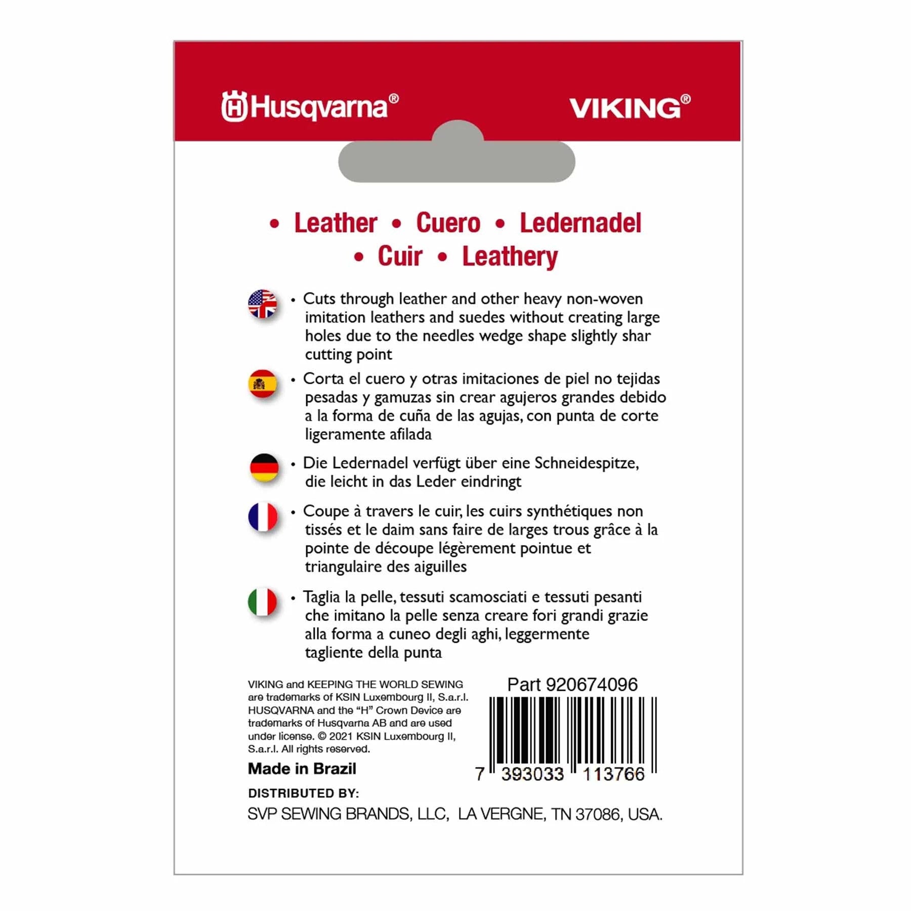HUSQVARNA® VIKING® Leather Needle Size 80/12, 5-Pack