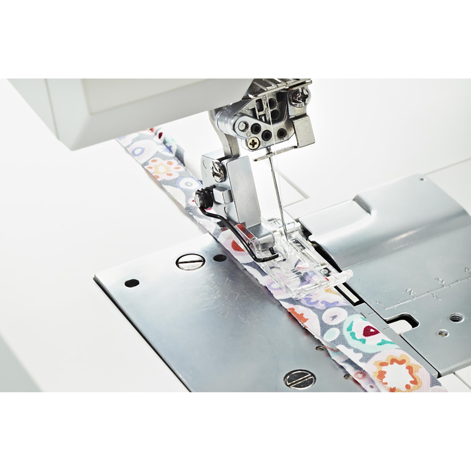 Increase your visibility while sewing with the Clear Coverstitch Foot. Create beautiful decorative edges and effects with the Flat Trim Foot and the Join and Fold Edging Foot. Straps and belt loops are effortless to create with the Strap and Belt Loop Foot. Add piping, corded tuck and even create wonderful decorative trims with the