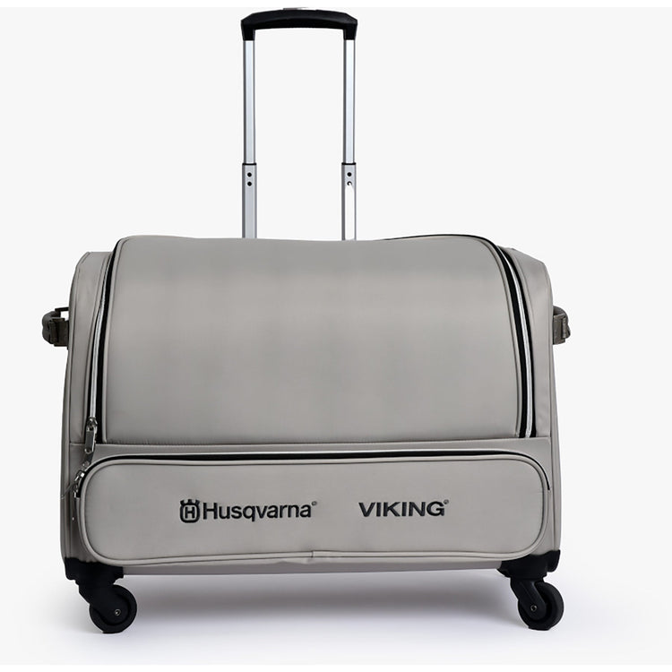Designed to protect and transport more compact HUSQVARNA® VIKING® sewing machines, using premium and durable materials and components. Top of the line features include multi-direction wheels and exterior and telescoping handles to make traveling extremely easy. Convenient storage is also available inside and out. Polyester twill exterior fabric. 24.5"x15"x19.5" size.